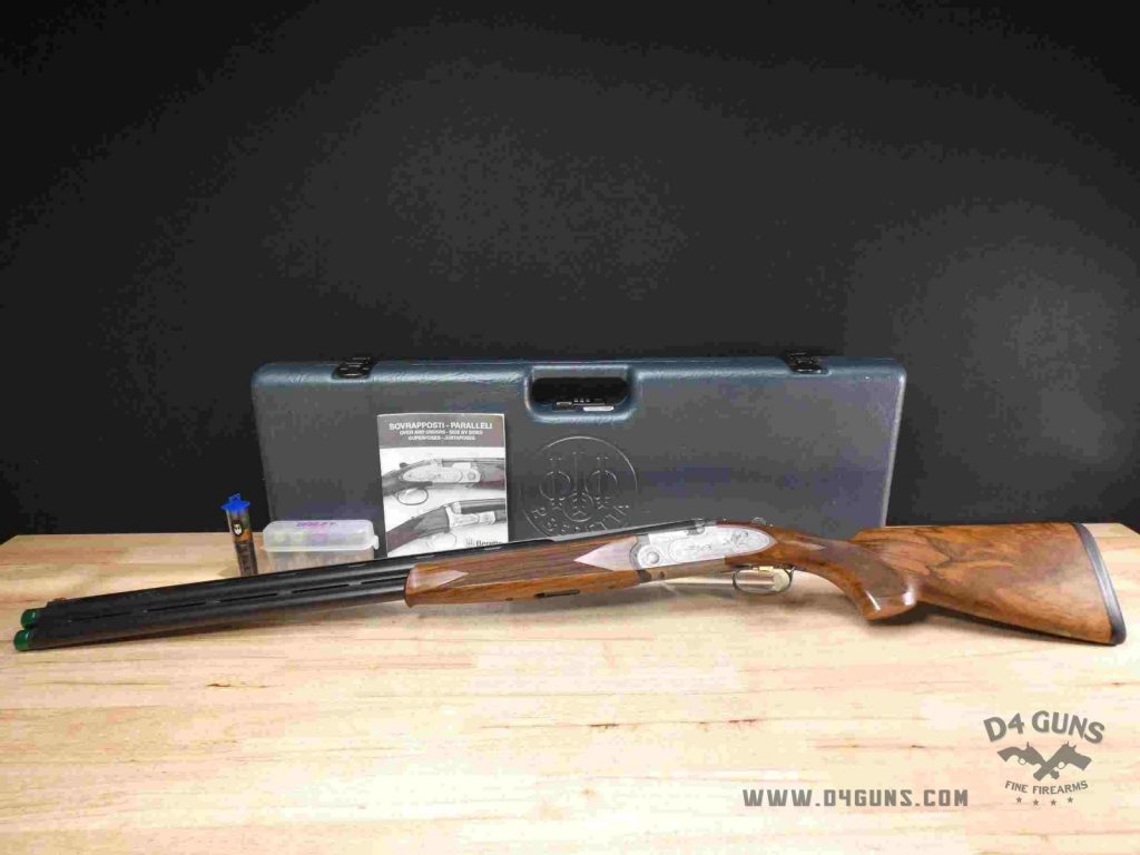 This is a Beretta S687 EELL Diamond Pigeon over-under shotgun in 12 gauge. Serial number-M41829B. This shotgun is in great condition and comes with the original lockable case, manual, snapcaps, choke tube wrench, replacement sight beads and trigger, modified and full factory Beretta MobilChoke choke tubes, and 6 Briley choke tubes (2 skeet, 1 improved cylinder, 1 cylinder, and 2 diffusion). After running a serial number lookup, we've determined this shotgun was manufactured in 1998. This particular shotgun features hand chased engravings throughout the receiver, with Bottega C. Giovanelli's signature engraved near the trigger guard. There are a few minor dings on the stock and forend as seen in the photos, but the firearm is in excellent condition for its age.