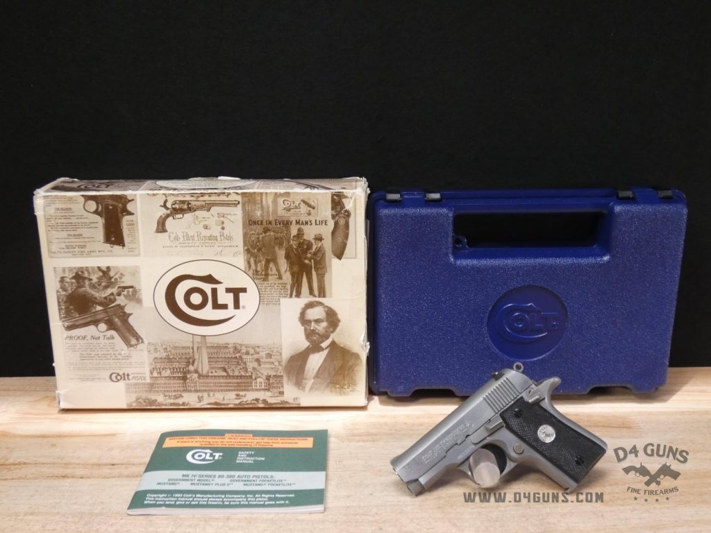 This is a Colt MK IV Series 80 Mustang semi-automatic pistol in .380 ACP. Serial number – MS12279. This pistol comes with the original case, manual, and 1 magazine. After running a serial number lookup, we've determined this pistol was manufactured in 1995. The Colt .380 Mustang is small, lightweight, and boasts enhanced durability, reliability, and accuracy, making it an ideal handgun for personal protection. The precise machining process, high-quality materials, and design improvements make the Colt Mustang one of the most consistent and reliable firearms on the market.
