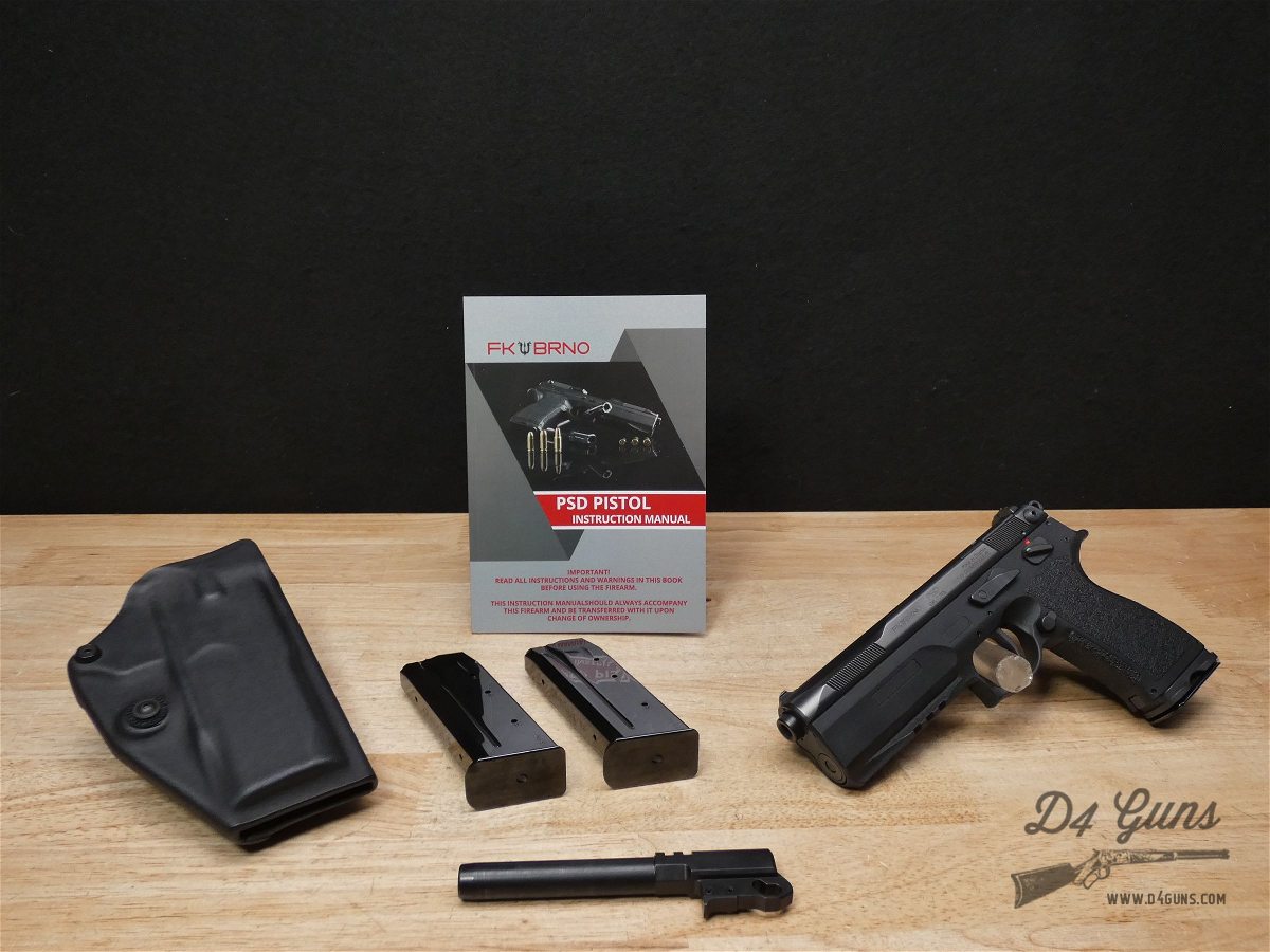 This is a no-reserve penny auction for an FK BRNO PSD semi-auto pistol in 7.5 FK & 10mm Auto. Serial number- AB1938. This pistol is in excellent condition and includes 2 barrels (both with excellent bores), the original manual, three magazines, cable lock, additional sights, and a Vega Holster.