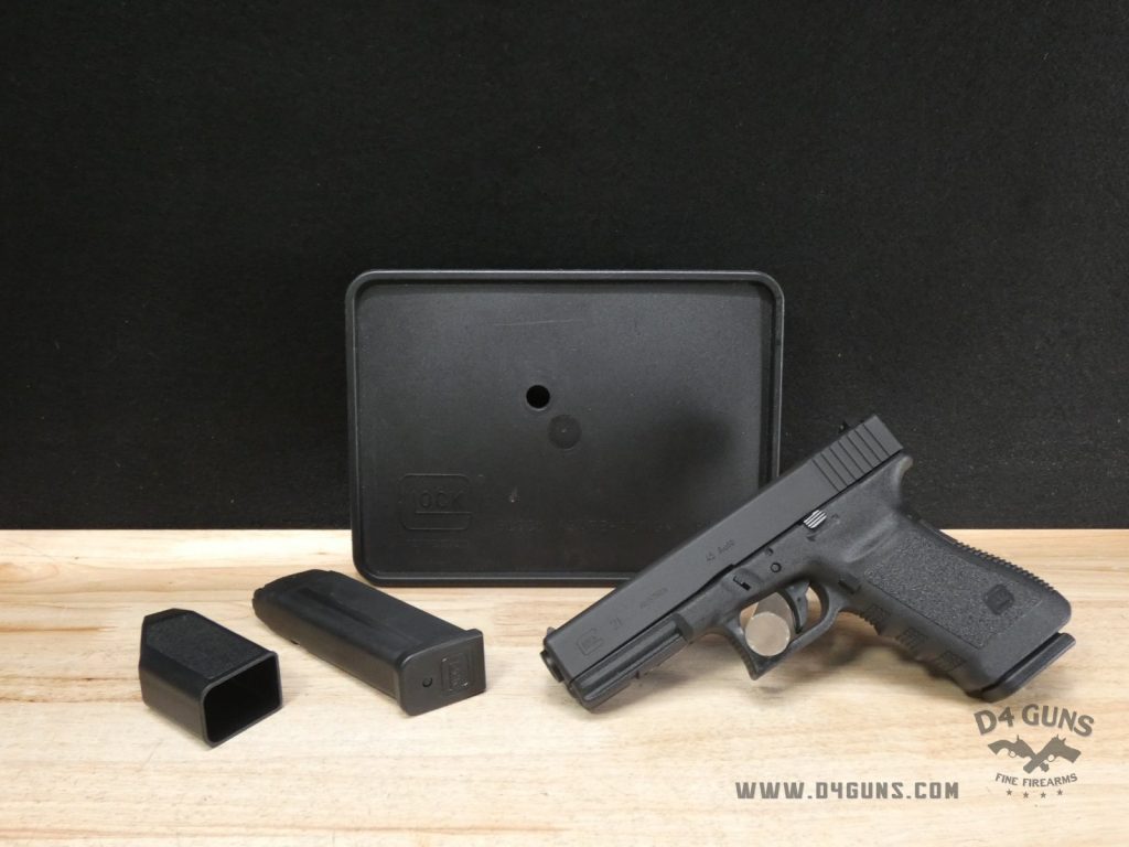 This is a Glock 21 Gen 3 semi-automatic pistol in .45 ACP. Serial number-CWK640. This pistol is in great condition and comes with the original case, speedloader, and two 10 round magazines. Glock pistols incorporate a number of features intended to enhance reliability in adverse conditions, such as utilizing advanced metal coatings, slide guides instead of true frame rails, and an unusual cocking mechanism wherein the trigger is partially responsible for cocking the striker. For maintenance, the pistol disassembles into five main groups: the barrel, slide, frame, magazine, and recoil-spring assembly. Add this classic pistol to your collection and feel the power of owning a Glock 21, bid before time runs out.