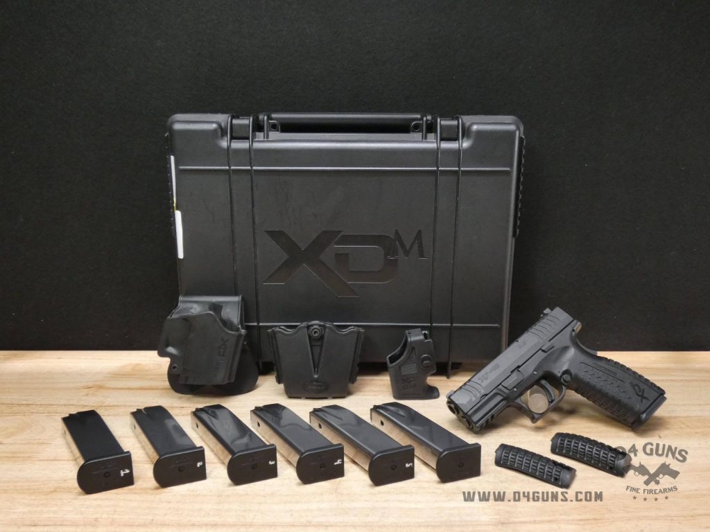 This is a Springfield XDM-40 semi-automatic pistol in .40 S&W. Serial number-MG195234. This pistol is in excellent condition and comes with the original case, holster, speedloader, magazine carrier, interchangeable backstraps, and seven 16 round magazines. The XDM is packed with features. The three interchangeable backstraps mean that no matter what size your hand, the pistol can fit it perfectly. Mega-lock texturing will keep it secure in your grasp, while the night sights align with ease and the minimal reset trigger breaks crisply and cleanly. And when you do send a round downrange, the match-grade barrel will direct it with industry leading precision.
