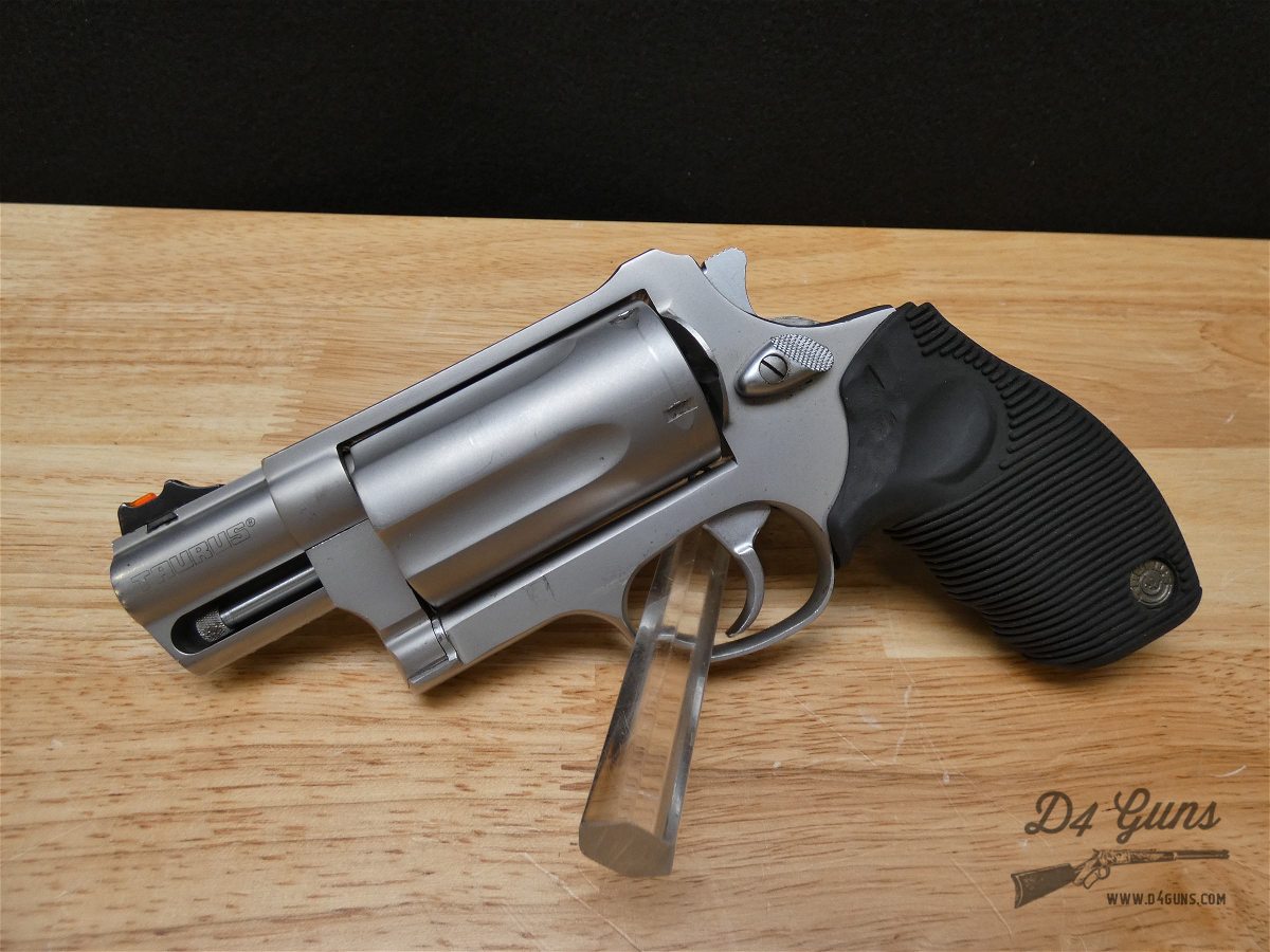 This is a no reserve penny auction for a Taurus The Judge Public Defender revolver in .45 Colt & .410 GA. Serial number- CV877706. This Judge is in good condition and features a 2" barrel and a 5-shot cylinder. More than a decade since it was first introduced, the legendary Taurus Judge still rules. Capable of chambering both 45 Colt and 410 shotshell, it’s the original five-shot game changer. This amazing combo gun is ideal for short distances – where most altercations occur or longer distances with the .45 Colt ammo.