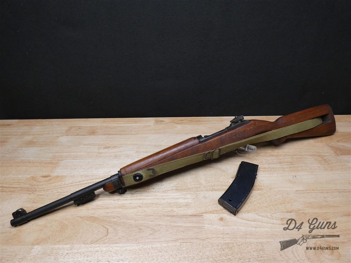 This is a no reserve penny auction for an Underwood M1 Carbine semi-automatic rifle in .30 Carbine. Serial number- 2899200. Manufactured in 1944, this M1 Carbine is in great condition and comes with a 30-round magazine and a "C clip" sling. This M1 features an "Underwood 44" stamp on the top side of the barrel indicating the date of manufacture, a "firebomb" stamp underneath the date and a matching stamp on the receiver by the serial number. The M1 carbine (formally the United States Carbine, Caliber .30, M1) is a lightweight semi-automatic carbine that was a standard firearm for the U.S. military during World War II, the Korean War and the Vietnam War. The M1 carbine was produced in several variants and was widely used by paramilitary and police forces around the world, and also became a popular civilian firearm after World War II. Of the estimated six-million M1 carbines produced from 1941 to 1945, the 545,616 carbines made by Underwood was a small 8.9 percent.